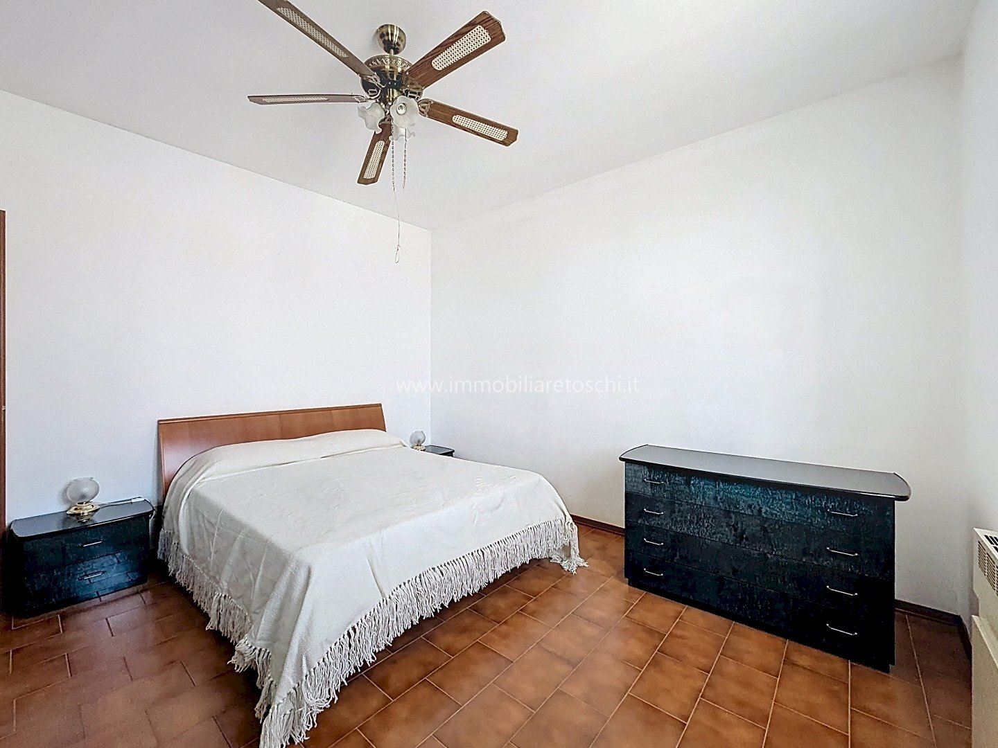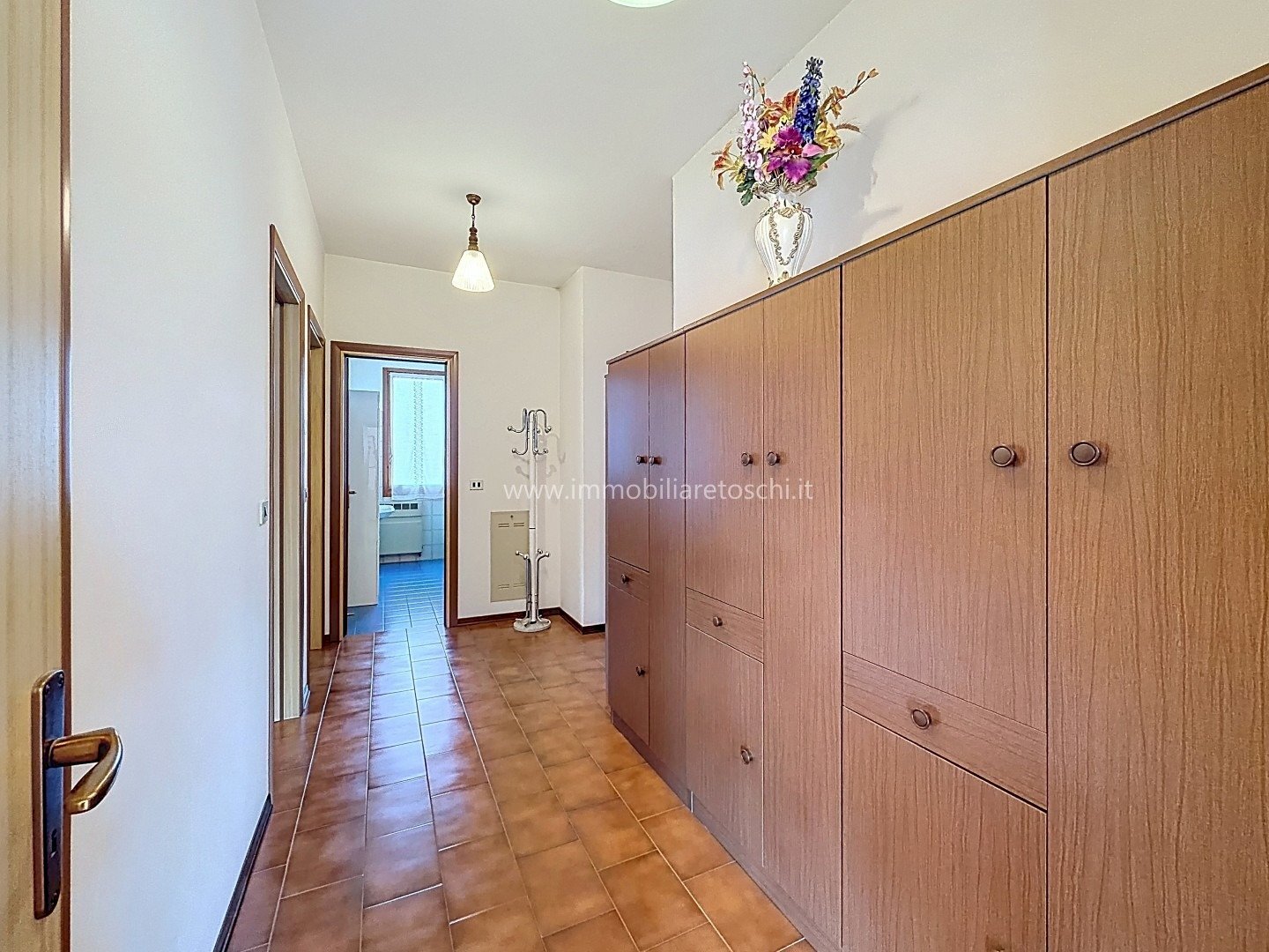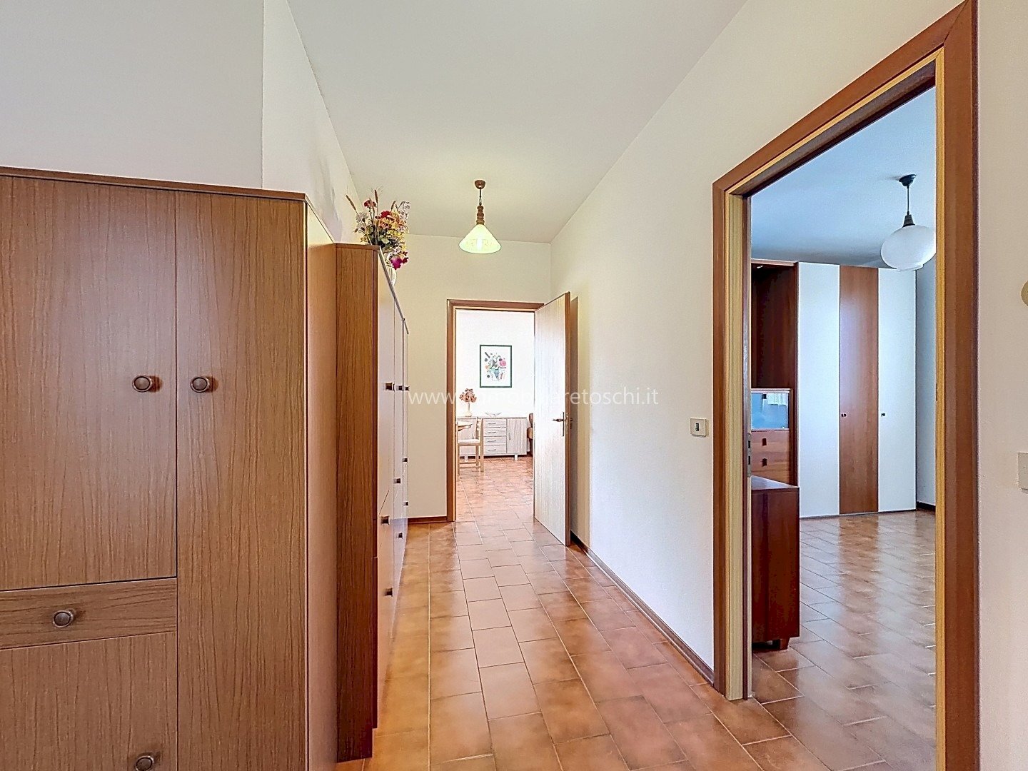 La zona notte, ben separata, si sviluppa lungo un ampio corridoio arredabile e comprende tre camere matrimoniali e due bagni finestrati.